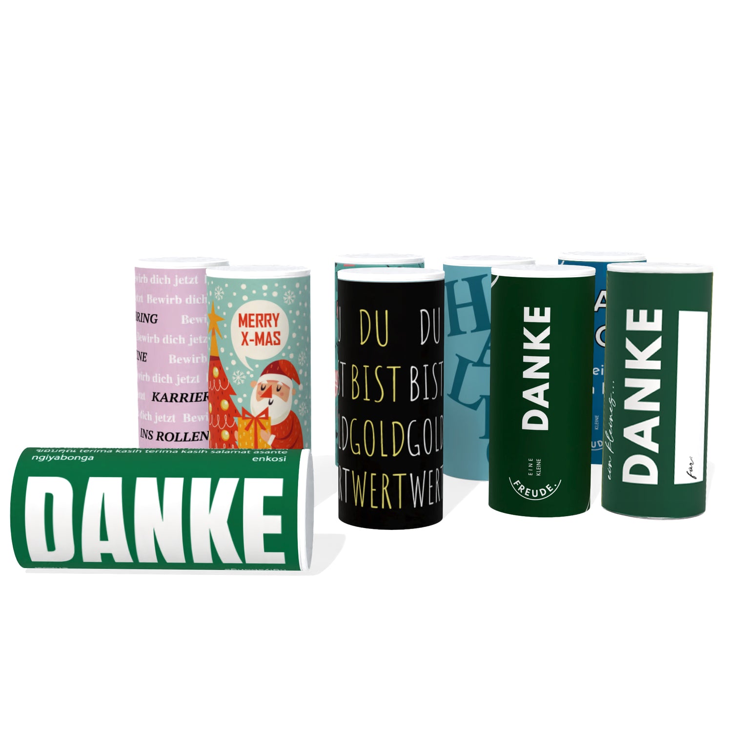 Jede Geschenkdose kann mit einem individuellen Etikett versehen werden, um den persönlichen Touch zu verstärken. Ob mit deinem Firmenlogo, einer speziellen Botschaft oder einer kreativen Gestaltung – diese kleinen Aufmerksamkeiten zeigen, dass du dir Gedanken gemacht hast und verstärken die Wirkung deiner Werbemittel. Sie sind ideal, um deine Marke hervorzuheben und positive Eindrücke zu hinterlassen.