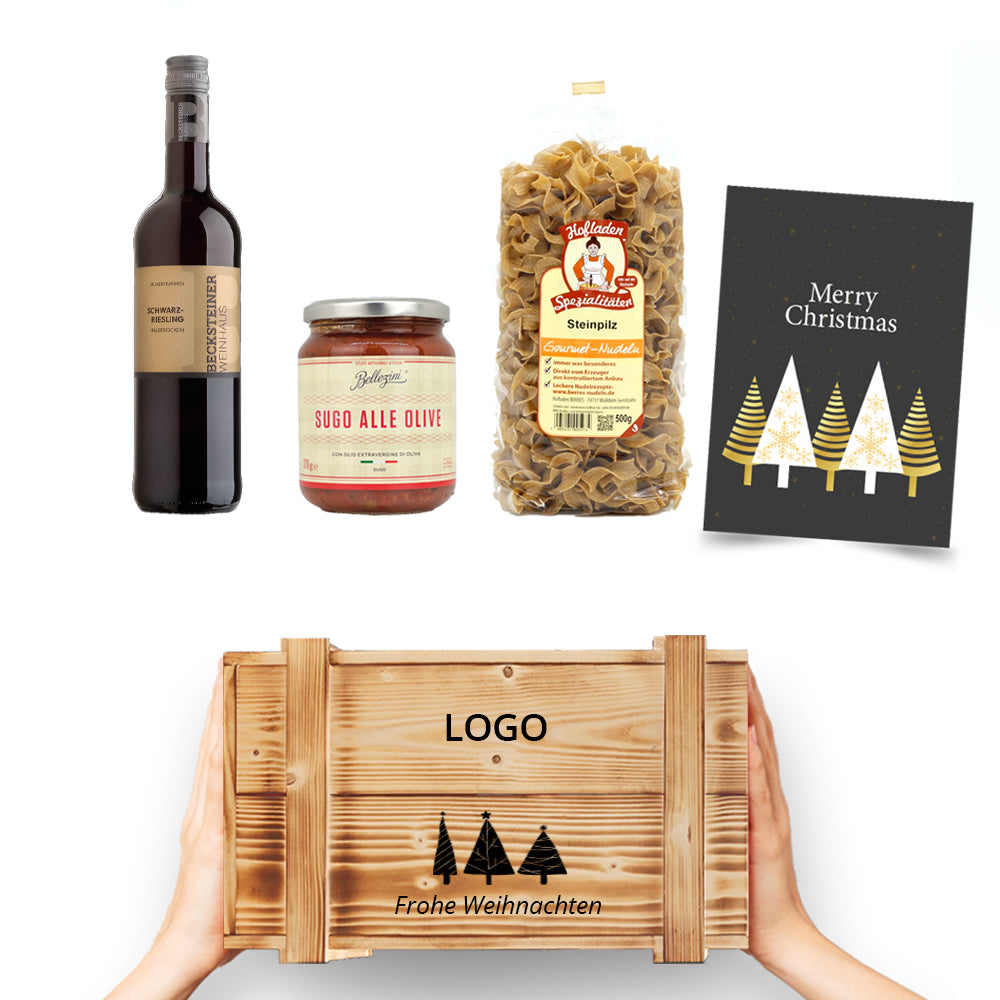 Unsere hochwertigen Holzkisten mit Logo-Gravur sind die ideale Wahl für exklusive Weihnachtsgeschenke,...